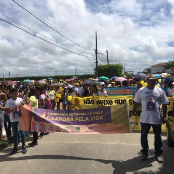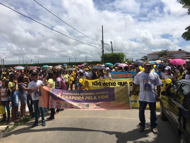 O suicídio é um tema que muitas pessoas ainda têm medo e receio de debaterem. Contudo, manifestações voltadas a esse assunto acabam despertando um pensamento reflexivo positivo nos indivíduos com esse perfil, a fim de quebrar esse paradigma. Com isso, nesta sexta-feira, 20, a Prefeitura de Caaporã, através da Secretaria de Saúde, realizou a 1ª caminhada voltada a temática “Prevenção do Suicídio”, em alusão ao Setembro Amarelo.